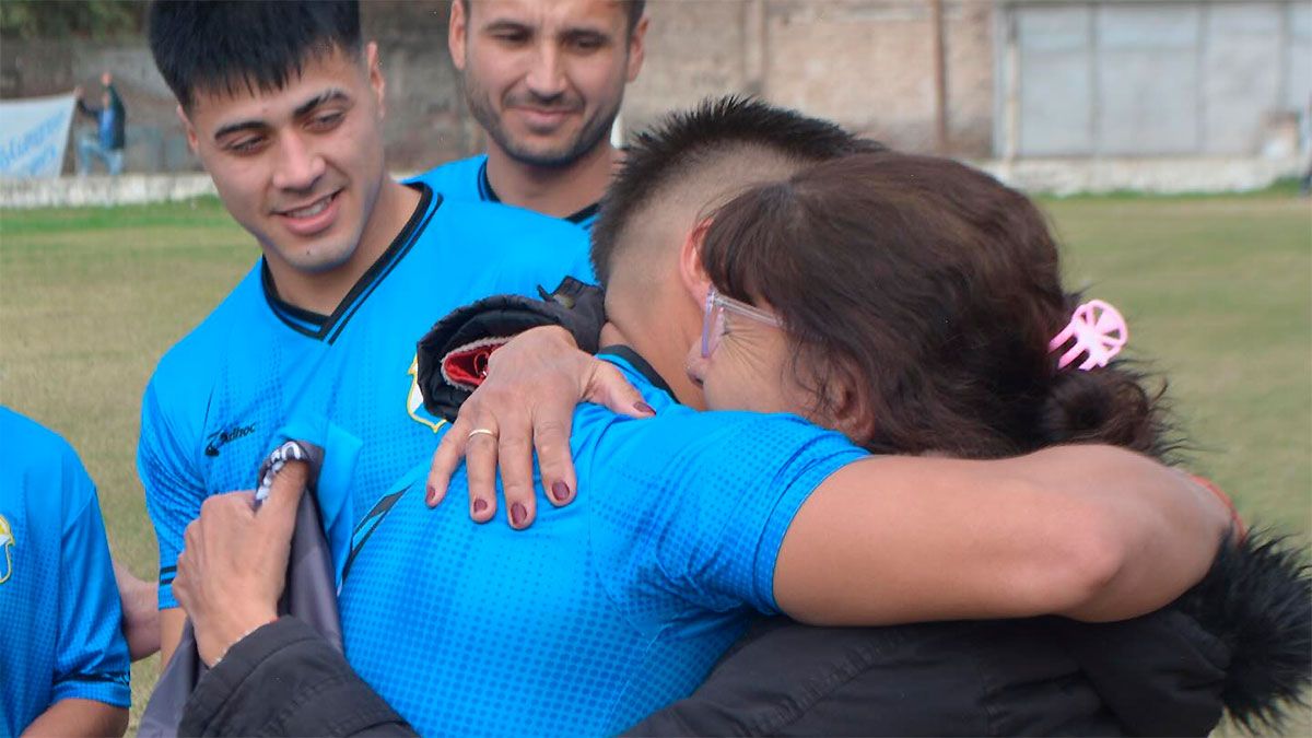 En el centro del campo de juego, el club recibió con profundo respeto y cariño a Doña Nelda Alderete de Valoy, esposa del “Loco” y figura clave en la vida del querido exjugador. El homenaje estuvo encabezado por integrantes del plantel profesional, entre ellos Jesús Denett, Agustín Sequeira y Martín Romero, quienes le obsequiaron una camiseta oficial del club, gesto que marcó una previa especial y emotiva.
