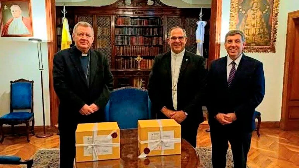 El envío de las cajas con todo el material fue realizado por la Nunciatura Apostólica en la Argentina. Monseñor José Luis Corral obispo de Añatuya y Roberto Dabusti postulador de la causa en la fase diocesana, hicieron entrega hace unas semanas de todo el material al Nuncio Apostólico en Argentina Monseñor Miroslaw Adamczyk.