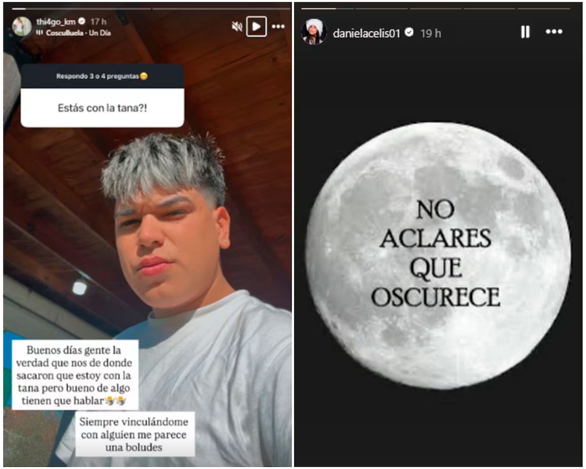 Ni bien los supuestos llegaron a oídos de Thiago, decidió desmentirlo públicamente. Pero el detalle es que poco tiempo después, Celis compartía un posteo con una frase que en las redes tomaron como una respuesta a su exnovio. Se trata de una imagen con una luna llena y el mensaje que dice “No aclares que oscurece”. Al parecer, las explicaciones de Medina no la convencieron del todo.