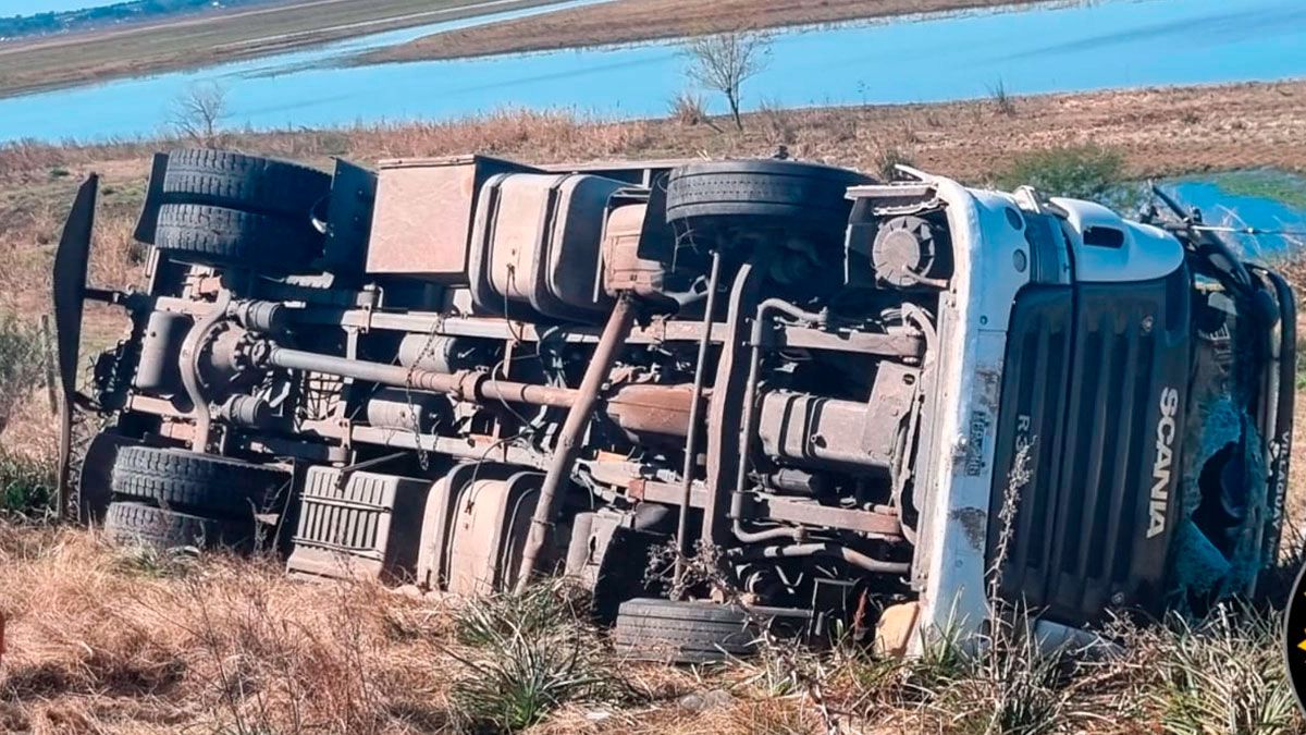 Un camionero de 50 años sufrió lesiones tras volcar el camión con acoplado que conducía en el Puente Victoria-Rosario. Fue asistido en el hospital local con cortes en el rostro y politraumatismos en la espalda.