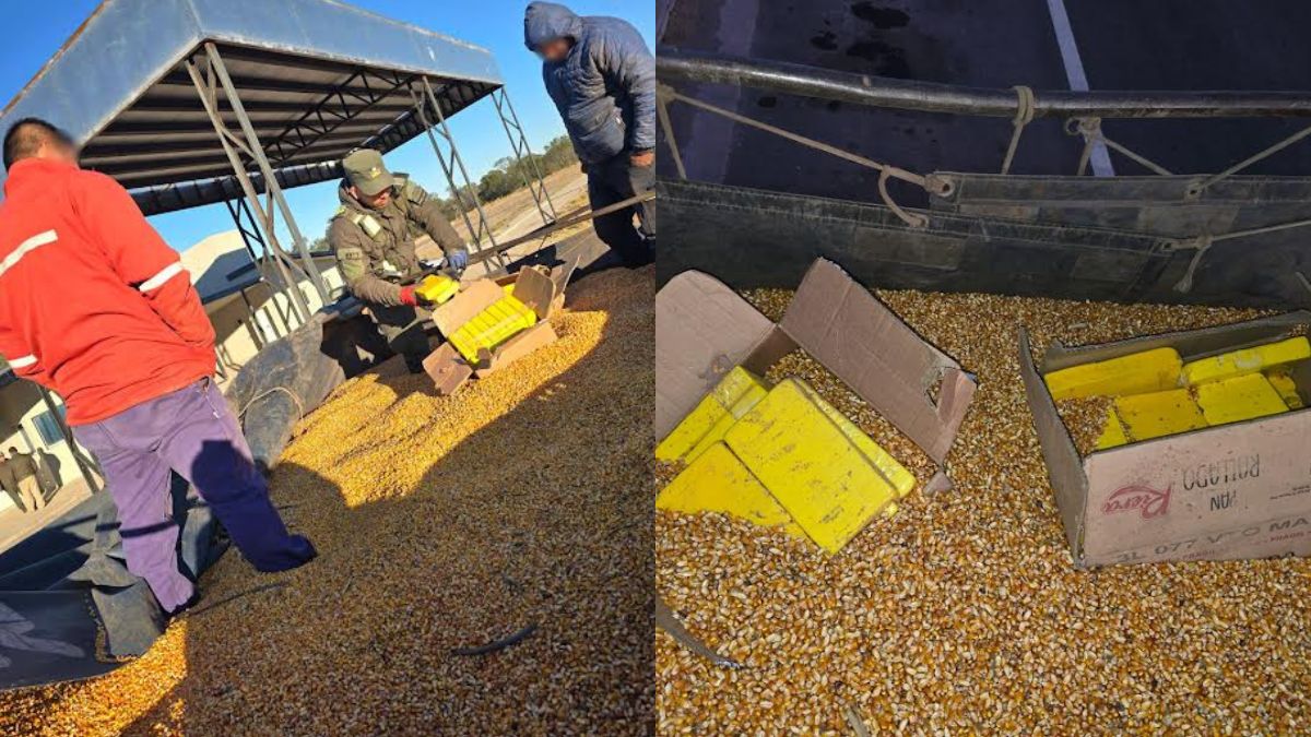 Cuando los oficiales profundizaron el control, encontraron dos cajas de cartón ocultas entre los granos, las cuales contenían en su interior 43 paquetes rectangulares envueltos en cinta, que al ser pesados arrojaron un total de 44 kilos 645 gramos de cocaína.