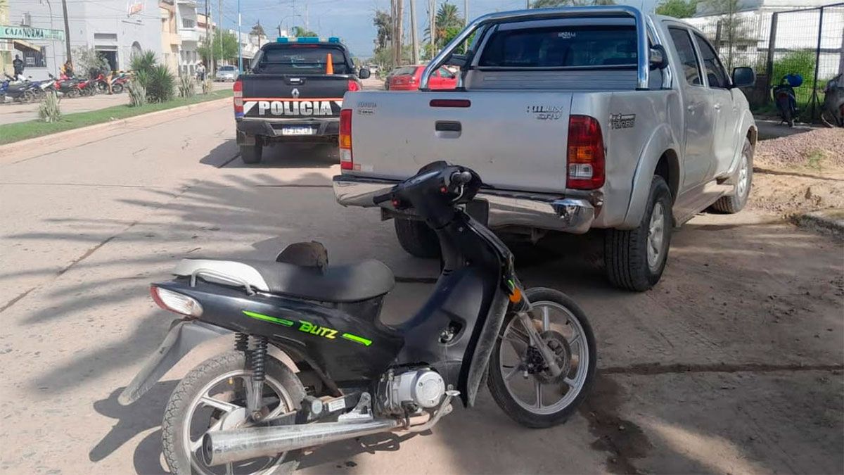 Según el informe policial, el hecho involucró a una motocicleta Yamaha YBR 125 cc y una camioneta Toyota Hilux blanca perteneciente a una empresa privada.