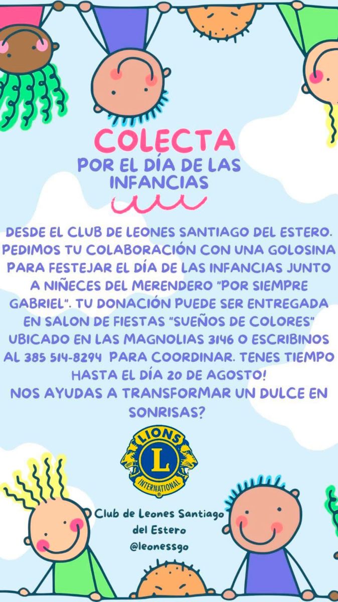El Club de Leones Santiago del Estero puso en marcha la campaña “Colecta solidaria por el Día de la Infancia – Una golosina por una sonrisa”, con el objetivo de reunir golosinas que serán destinadas a un festejo comunitario.