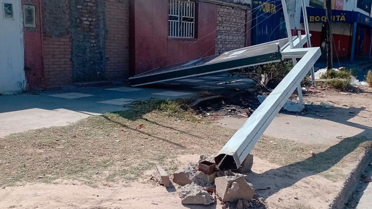 Las intensas ráfagas de casi 60 km/h provocaron la caída del cartel en la intersección con calle Santa Rosa.