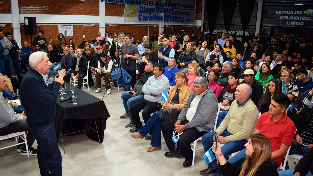 La bienvenida estuvo a cargo del intendente Ponti, quien hizo referencia a su ingreso en la política fue “por vocación de militante peronista. Vemos hoy cómo cuando en el país no gobierna el peronismo la gente sufre. Nosotros apostamos a lo social que abraza y dignifica al vecino que necesita, y a la obra pública para impulsar mejor calidad de vida, por eso ya llevamos más de 1000 nuevas conexiones domiciliarias de agua corriente, iluminamos sectores urbanos sobre la Ruta, gestionamos e hicimos realidad un Centro de Monitoreo con más de 70 cámaras. Necesitamos defender estas políticas en el Congreso Nacional ante los embates del modelo empobrecedor de la extrema derecha”, remarcó.