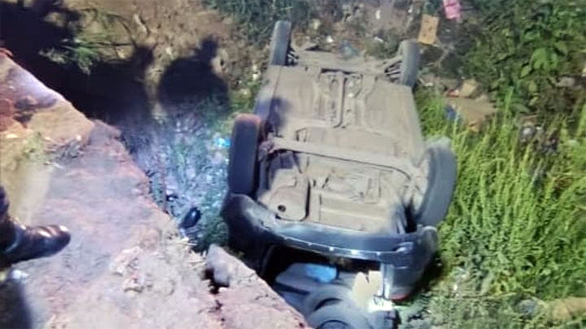 Un automóvil terminó con sus cuatro ruedas hacia el cielo, luego de que su conductor perdiera el control y terminara dentro de una acequia.