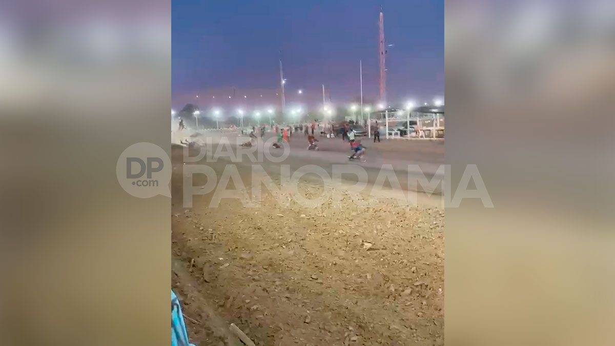 Las imágenes registran cómo uno de los competidores, en plena curva, pierde el control de su motocicleta e impacta contra otro corredor. En cuestión de segundos se genera un choque en cadena que involucra a otros motociclistas y provoca escenas de desesperación entre los presentes.