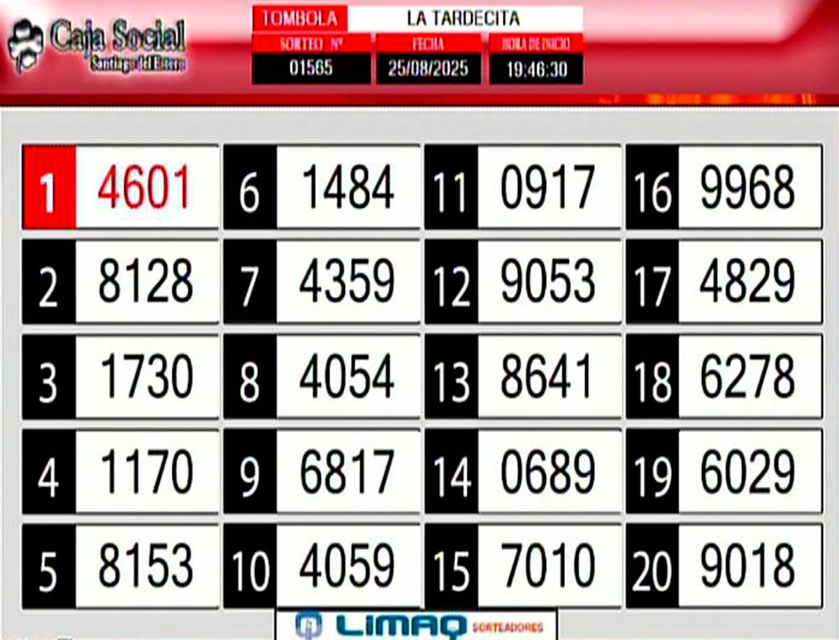 La lista completa de números del sorteo Tardecita:
