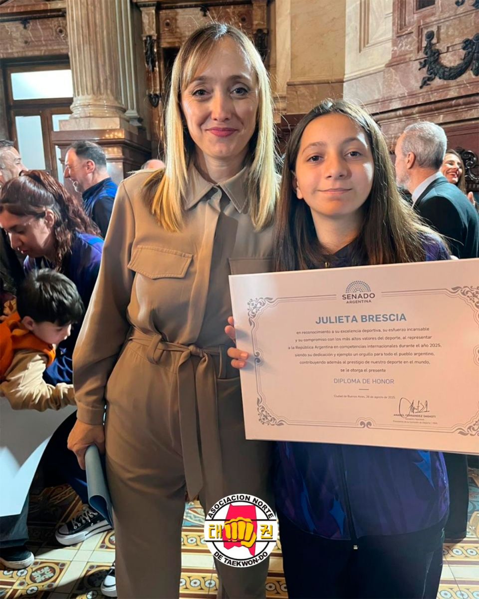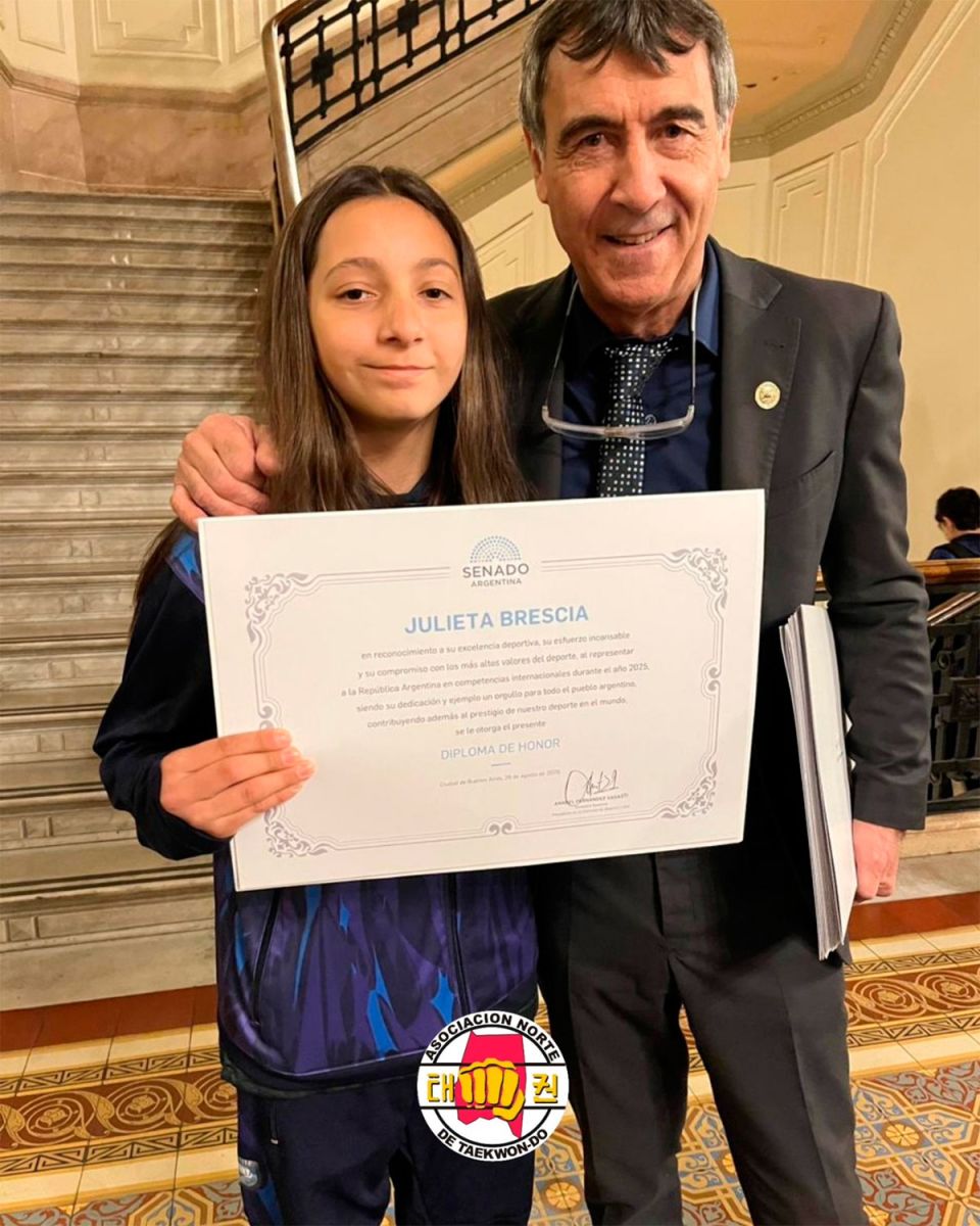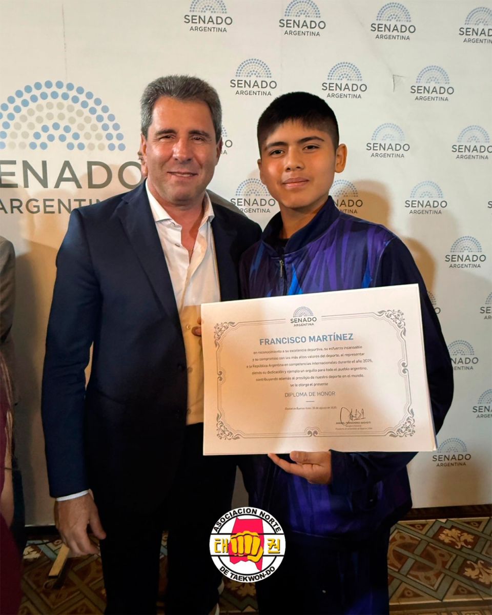 A través de la Confederación Argentina de Taekwon-Do ITF (CATITF), la Cámara Alta otorgó un Diploma de Reconocimiento a Emanuel García de Pascuale, coronado Campeón Mundial en Combate Pre-Juvenil hasta 50 kg, así como a Julieta Brescia y Francisco Martínez quienes obtuvieron con el tercer lugar en el podio de Combate Pre-Juvenil hasta 60 kg y 50 kg respectivamente, como incentivo al mérito de la destacada participación que tuvieron en el viejo continente.