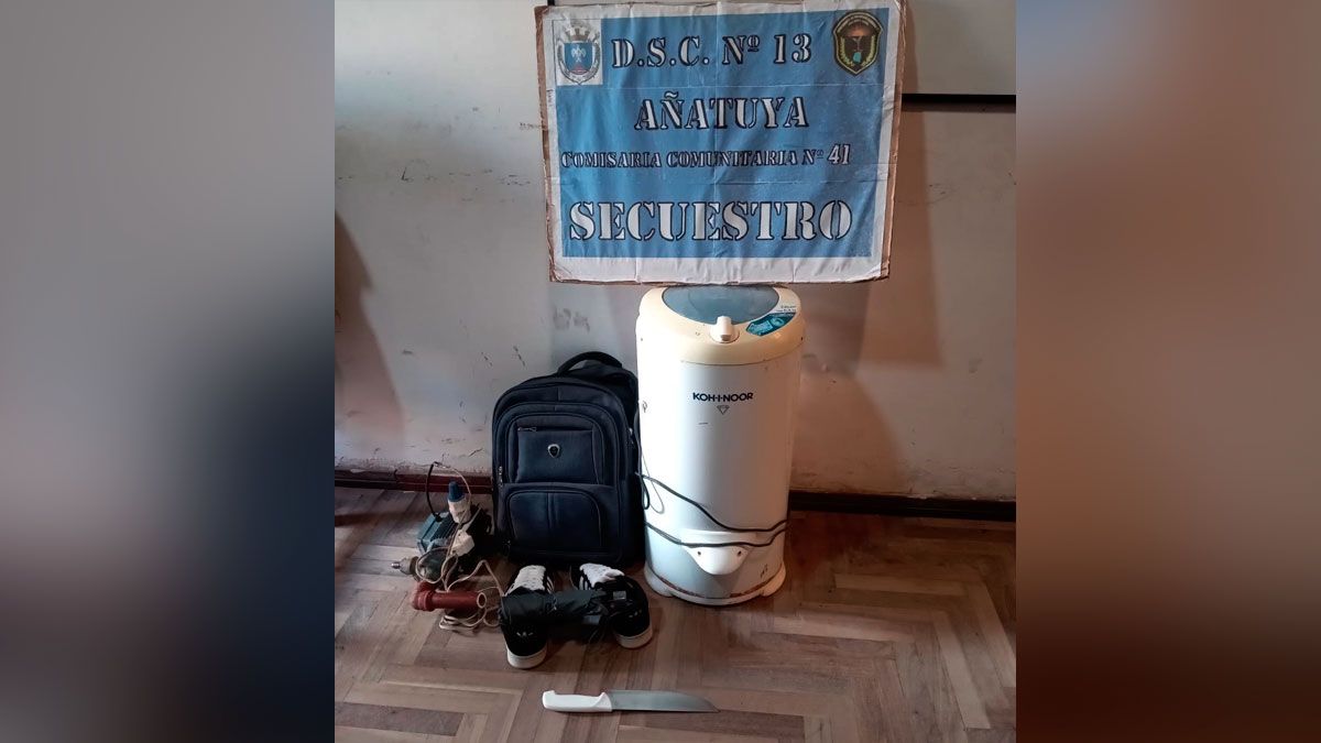 Así la policía pudo recuperar un secarropas, una bomba de aguas, dos pares de zapatillas, un cuchillo, un cargador de celular y una mochila.