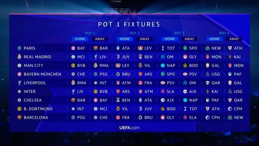 Con el formato de liga que se estrenó la temporada pasada y llegó para quedarse, ya se conocen los 36 equipos clasificados y sus respectivos cruces de la Champions League.