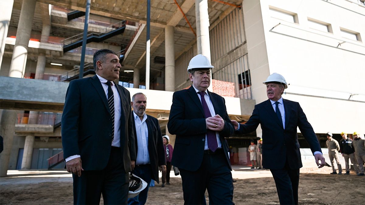 Luego las autoridades pasaron al sector donde se emplazará el hospital, donde se pudo observar el avance de la construcción, los distintos espacios y toda su infraestructura, con tecnología de avanzada que lo convertirá en uno de los hospitales de clínica más modernos del país.