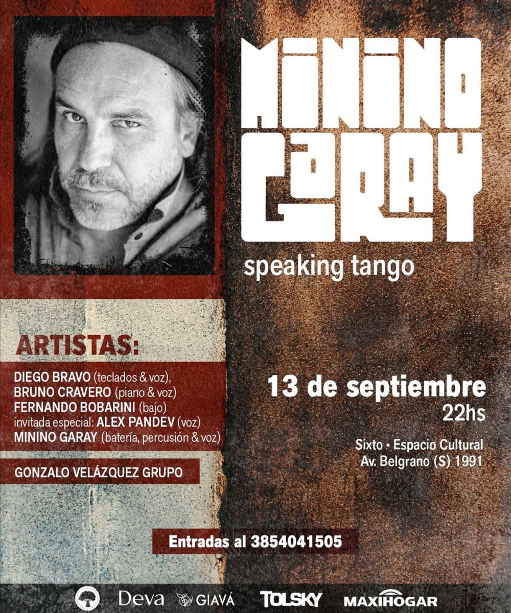 El próximo viernes 13 de septiembre, el reconocido percusionista y compositor argentino Minino Garay presentará en Santiago del Estero su proyecto Speaking Tango, en una única función en Sixto Espacio Cultural.