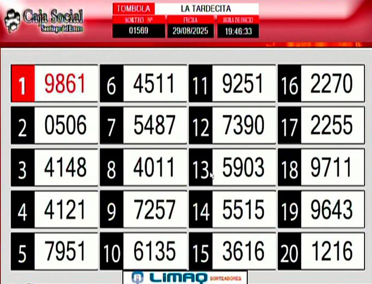 Este viernes 29 de agosto, como todos los días, se llevó a cabo un nuevo sorteo de la Tómbola Santiagueña.