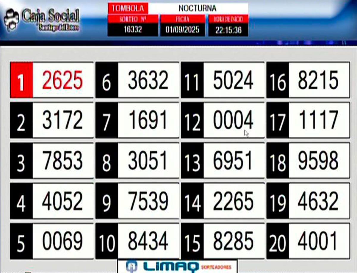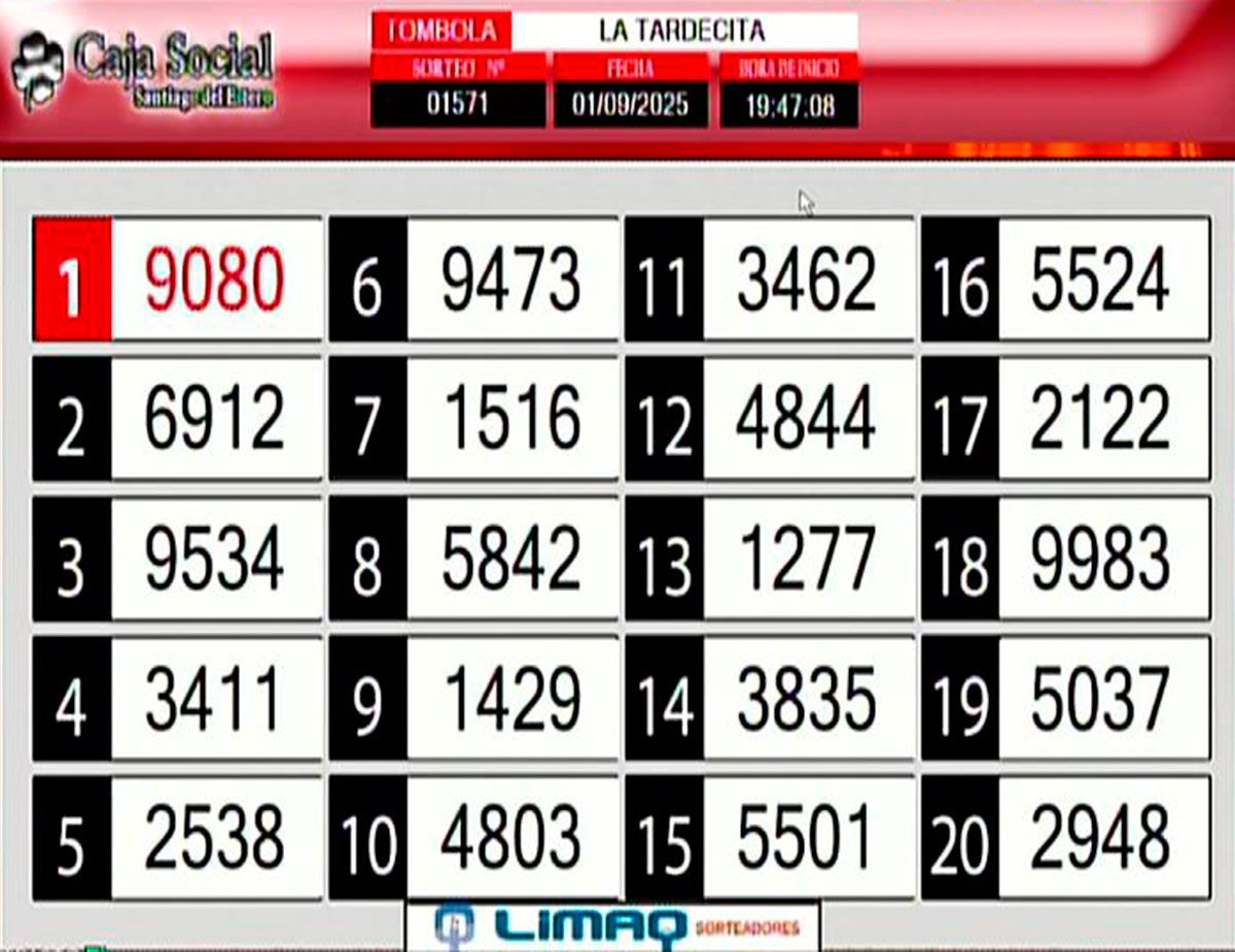 Este lunes 1 de septiembre, como todos los días, se llevó a cabo un nuevo sorteo de la Tómbola Santiagueña.
