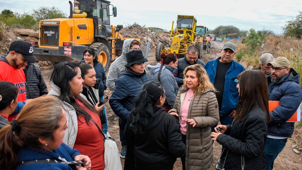 Acompañada por vecinos de la zona oeste, la intendente, Ing. Norma Fuentes, supervisó los trabajos de apertura de la calle Andrés Chazarreta, desde la Avenida del Trabajo para conectar con Avenida Aguirre, en el barrio Mariano Moreno.