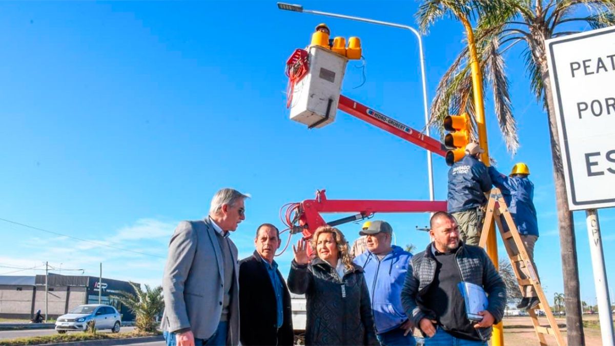 La intendente de la Capital, Ing. Norma Fuentes, observó los trabajos de instalación de los semáforos que comenzarán a funcionar en avenida Belgrano sur y rotonda de Circunvalación, a la altura del predio de Vialidad Nacional.
