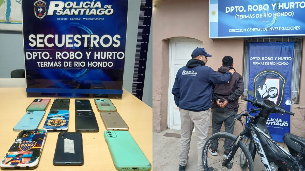 Con esta información, el personal policial solicitó las medidas judiciales correspondientes, que resultaron en la detención de dos personas y el secuestro de diez teléfonos celulares, prendas de vestir, una bicicleta y una motocicleta con dominio y motor adulterado.