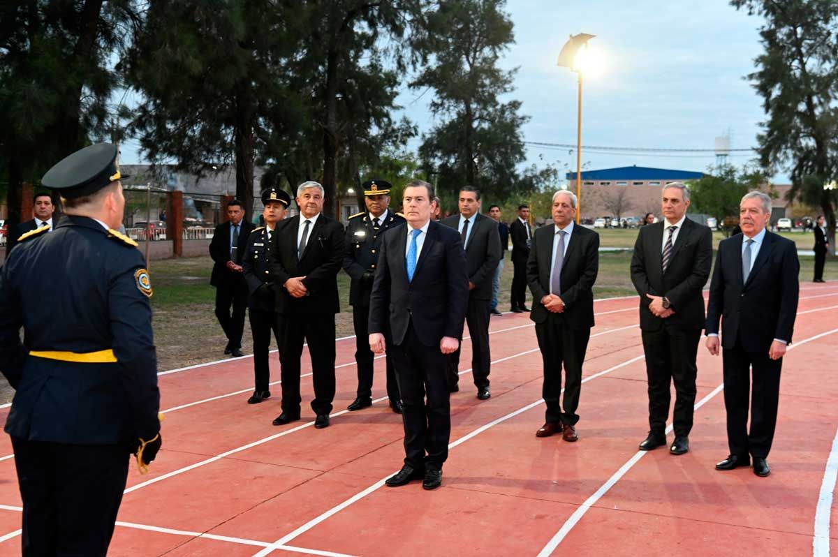 La ceremonia se desarrolló en el Complejo de Formación, Capacitación y Reentrenamiento Policial de la Escuela de Cadetes "Coronel Lorenzo Lugones", donde también estuvieron el ministro de Gobierno, Marcelo Barbur; el senador José Emilio Neder, el secretario de Seguridad, Marcelo Pato; el jefe de Policía, Laureano Silva; el subjefe Walter Gómez; el director de la Escuela de Cadetes “Coronel Lorenzo Lugones”, Alejandro Décima, y el subdirector de la Escuela de Suboficiales, Santiago Ruiz, entre otros invitados y familiares de los egresados.