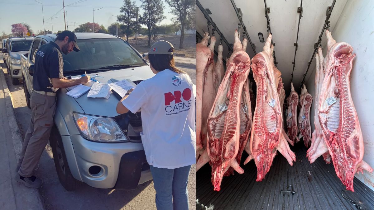 Durante el procedimiento fueron interceptados dos camiones, uno de ellos proveniente de la provincia de Córdoba, que transportaban carne porcina. Al momento de la inspección, se constató que parte de la mercadería había sido traspasada a un vehículo de menor porte que no contaba con la habilitación correspondiente por parte de los organismos oficiales competentes.