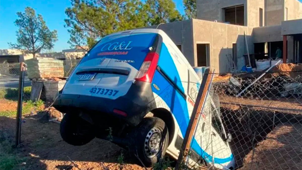 Una vez que el utilitario de emergencias ingresó a Funes, se incorporaron los patrulleros de la fuerza de seguridad de esa jurisdicción, que reforzaron el operativo. Todo culminó en calle 4D al 4600, en el barrio Cantegril cuando el Kangoo chocó un alambrado de una casa en construcción y quedó incrustado en el pozo donde se hará una pileta de ese terreno.