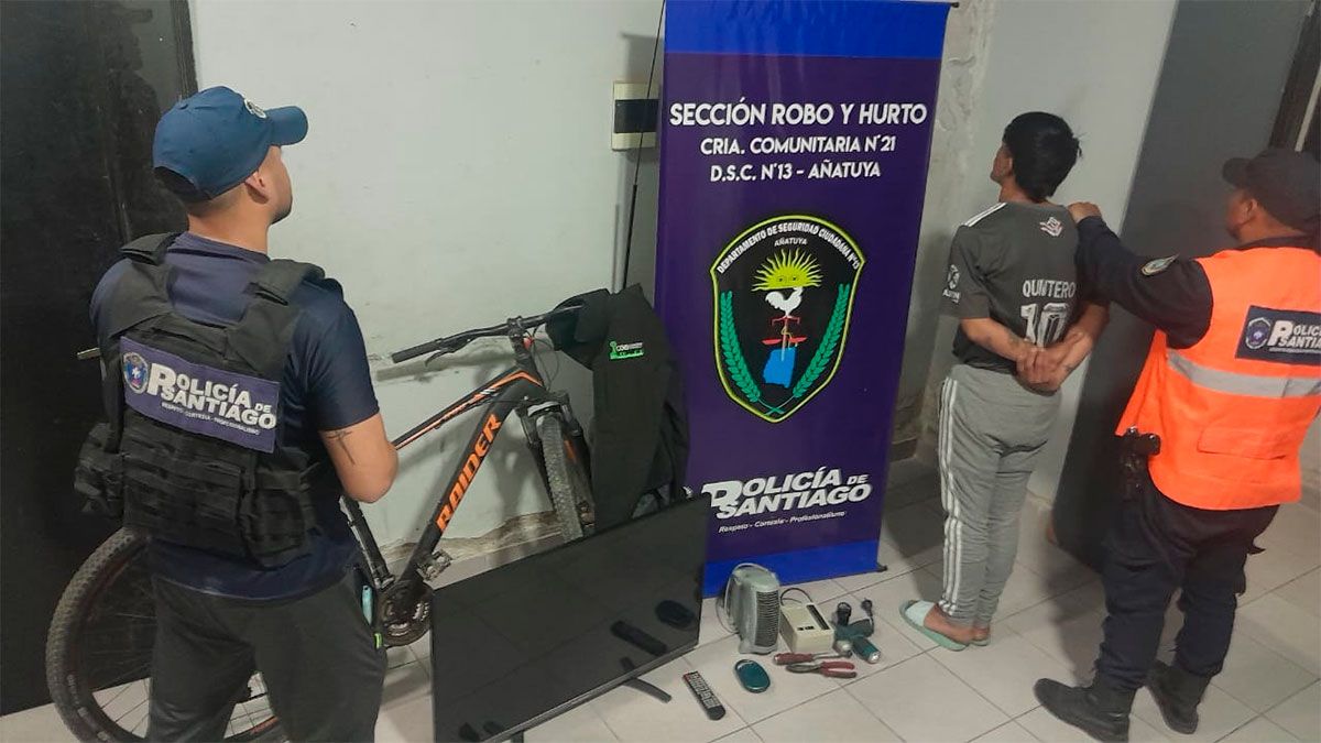 Un procedimiento realizado en la ciudad de Bandera por personal de la Sección Robo y Hurto, dependiente de la Brigada de Investigaciones, en conjunto con efectivos de la Comisaría Comunitaria N°21, permitió recuperar diversos elementos robados y detener al presunto autor de los hechos.