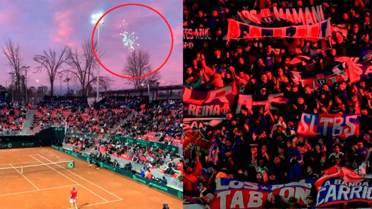 Los fanáticos del equipo trasandino salieron a festejar la Supercopa que obtuvieron ante Colo Colo. La celebración ocurrió a metros del Court Central Anita Lizana, lugar donde se jugó el torneo de tenis que se debió frenar varias veces.
