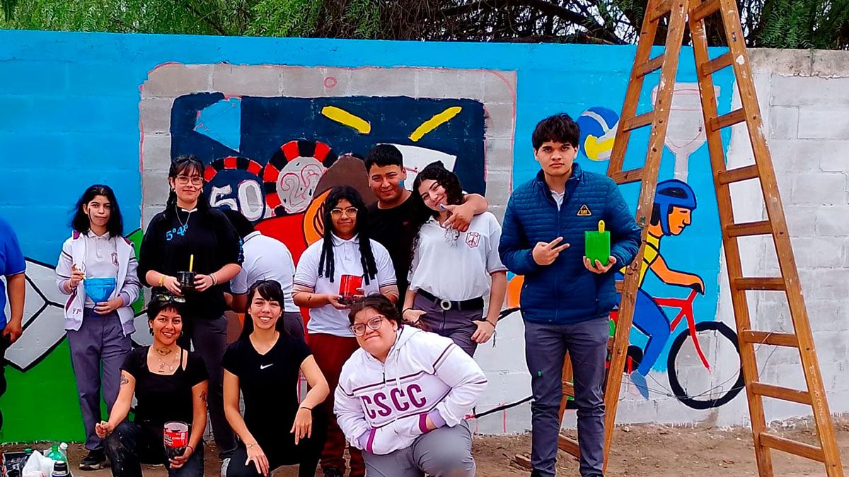 La actividad incluyó la participación de artistas plásticos locales y estudiantes de la Escuela Secundaria Campo Contreras, quienes, pincel en mano, transformaron paredes en un espacio de reflexión y conciencia social.