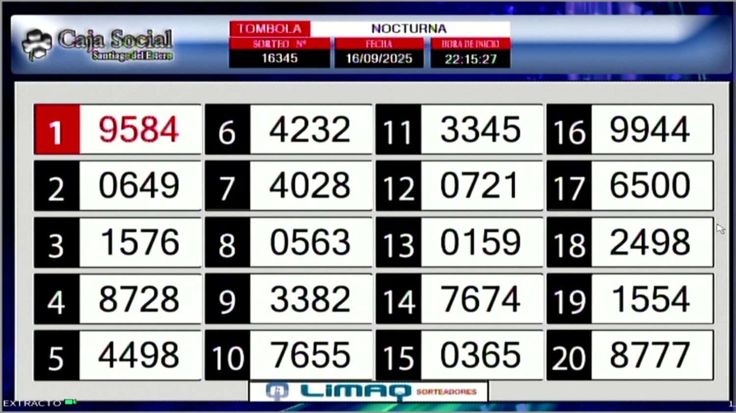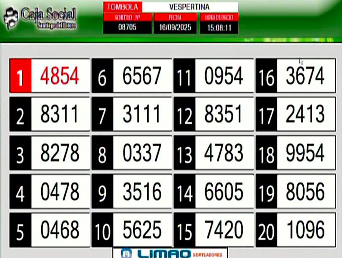 Este martes 16 de septiembre, como todos los días, se llevó a cabo un nuevo sorteo de la Tómbola Santiagueña.