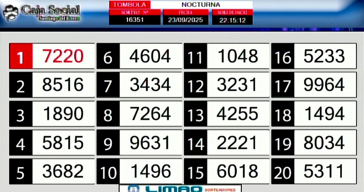 Este martes 23 de septiembre, como todos los días, se llevó a cabo un nuevo sorteo de la Tómbola Santiagueña.