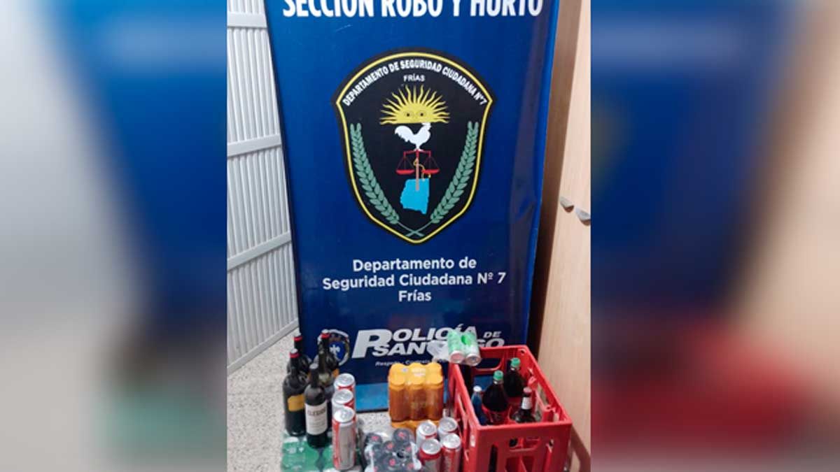 Tras un rastrillaje, la policía logró recuperar 24 latas de cerveza Heineken, 7 de cerveza Schneider, 12 de Golden, 3 vinos Viña de Balbo, 1 vino marca Elegido, varias gaseosas, cerveza Brahma y 11 latas de Speed, además de aproximadamente 20 sobres de bicarbonato.