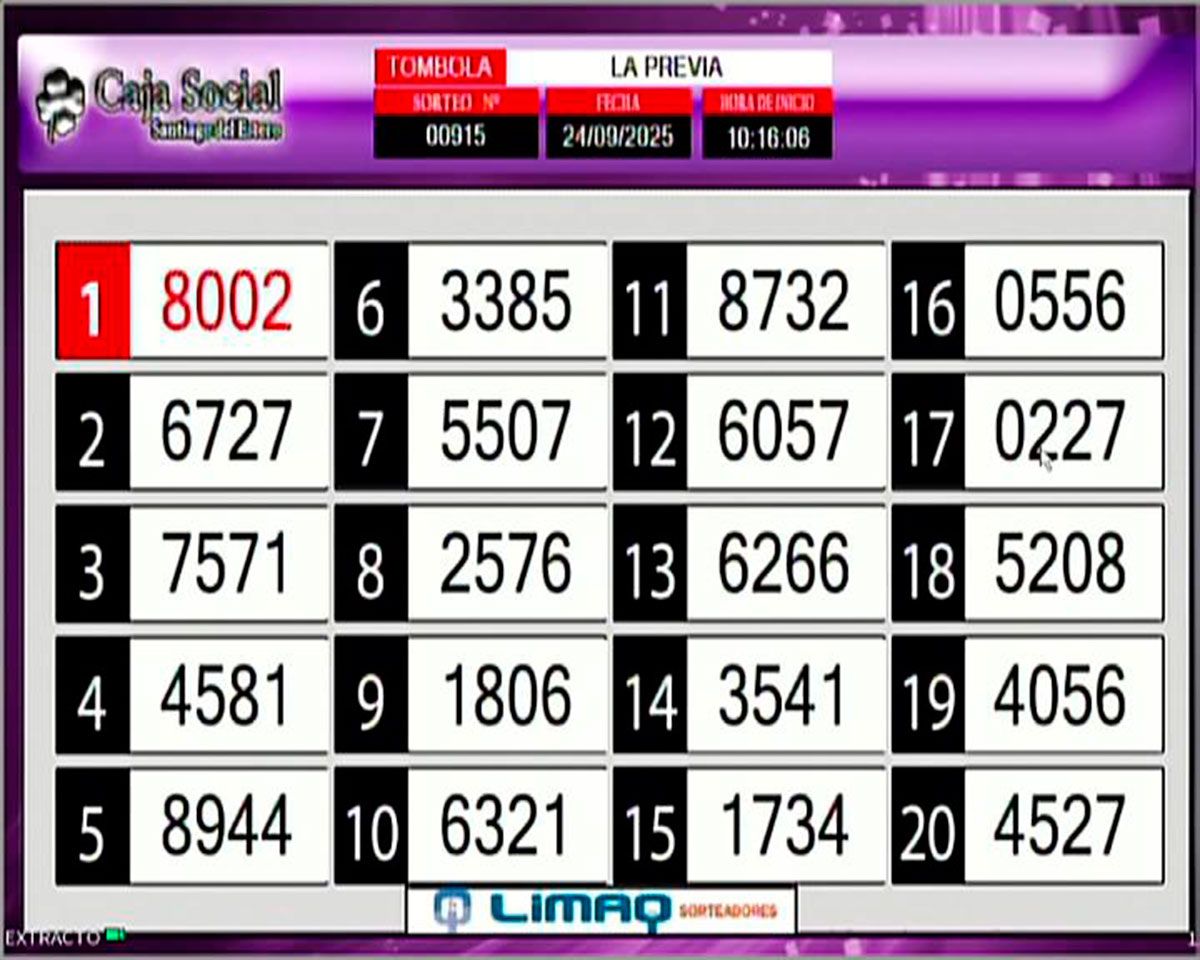 Este miércoles 24 de septiembre, como todos los días, se llevó a cabo un nuevo sorteo de la Tómbola Santiagueña.