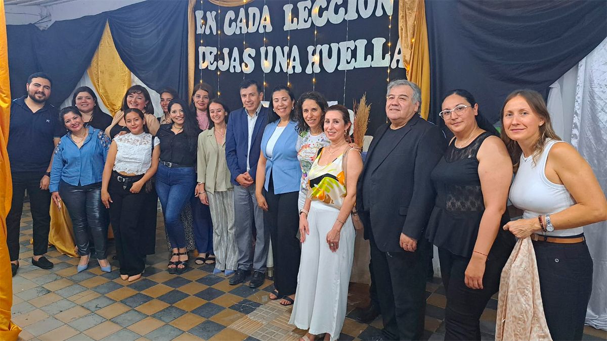 También dedicó palabras de felicitación y agradecimiento para todos los docentes. Por su parte, la profesora María José Martínez brindó un mensaje de reconocimiento a los docentes jubilados rindiendo homenaje a la trayectoria y dedicación del Dr. Francisco Jiménez; Lic. Graciela Pece y Brígida Mabel Farias quienes fueron reconocidos por su valioso legado y entrega a lo largo de los años.