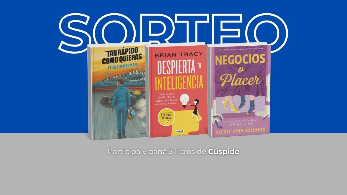 Negocios o Placer de Rachel Lynn Solomon, Tan Rapido Como Quieras de Flor Zimmerman y Despierta tu Inteligencia de Brian Tracy,  son los tres ejemplares que los amigos de Cúspide decidieron sortear.