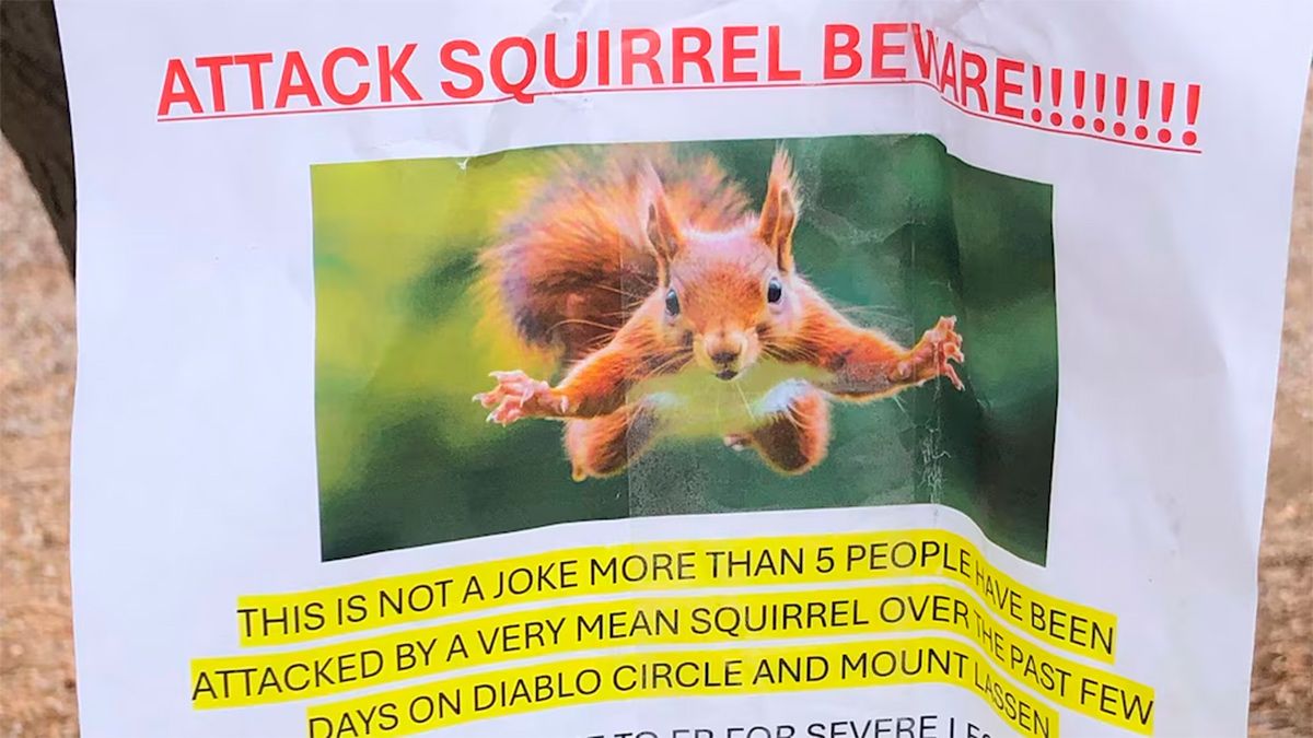 Ahora se han colocado volantes advirtiendo a los residentes que la ardilla no es una broma y que más de cinco personas han sido atacadas por una “ardilla muy mala” que “aparece de la nada”.