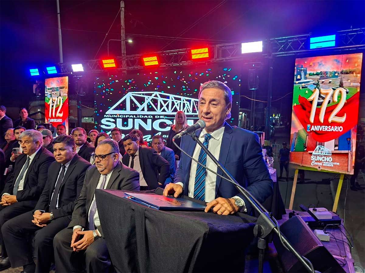 El vicegobernador Dr. Carlos Silva Neder, en representación del gobernador Gerardo Zamora, visitó esta noche Suncho Corral para participar en la conmemoración del 172° aniversario de la ciudad, dónde reafirmó “el compromiso del Gobierno provincial con el progreso de las comunidades del interior”.