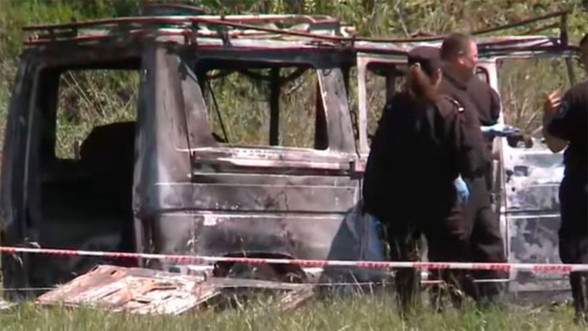 Al llegar a ese camino de tierra de difícil acceso, que no cuenta con alumbrado público, tiene escaso tránsito y corre cerca de las vías del ferrocarril Mitre, personal del Destacamento 13 de Colonia San José encontró una camioneta Renault Trafic blanca totalmente carbonizada. La sorpresa aumentó cuando inspeccionaron la parte posterior y notaron la presencia de huesos.