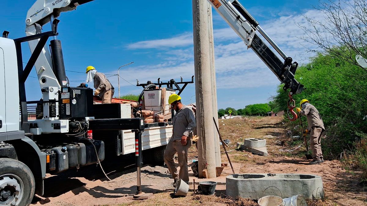 La ampliación de la red de alumbrado público en La Casilla se lleva adelante con la instalación de columnas de hormigón, para reforzar el tendido de cables en un tramo de aproximadamente mil metros, con la posibilidad de continuar llevando este servicio a otros sectores.