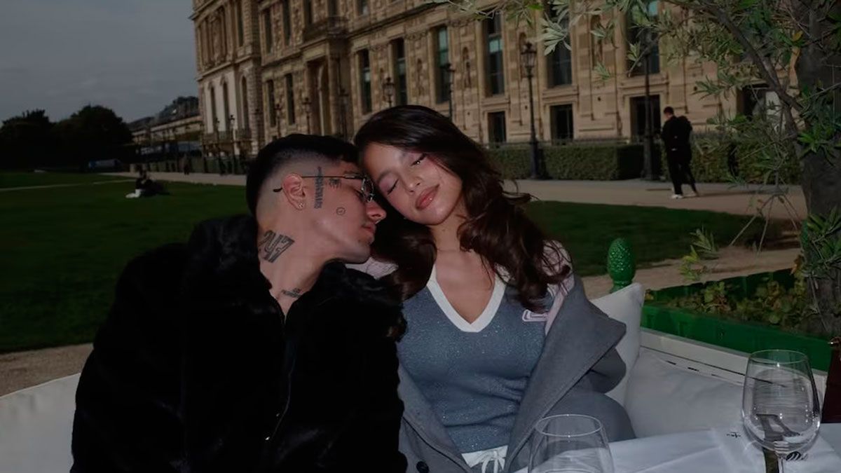“París, te amo”, escribió la cantante al publicar un carrusel de imágenes. En la primera postal, se la vio junto a Duki dentro de un vehículo, luciendo un conjunto gris de dos piezas con minifalda deportiva, medias blancas y sandalias de tacón. El trapero, por su parte, optó por un look urbano con chaqueta negra aterciopelada, pantalones rectos y varios anillos como accesorios.