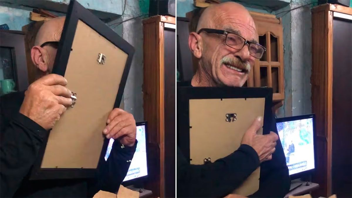 El regalo fue cuidadosamente preparado, y el paquete fue cubierto con viruta de madera para mantener la sorpresa. Cuando el abuelo comenzó a abrirlo, metió las manos en el paquete y notó que lo que estaba recibiendo era una foto. Sin embargo, lo que descubrió hizo que su reacción se volviera viral.
