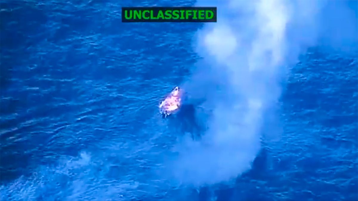 El secretario de Defensa señaló además que “la Inteligencia, sin duda alguna, confirmó que esta embarcación estaba dedicada al tráfico de estupefacientes, que las personas a bordo eran narcoterroristas y que operaban en una ruta marítima conocida por el tránsito de drogas”.