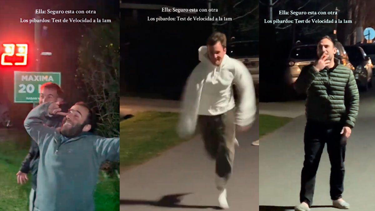 La dinámica consistió en que varios amigos se turnaron para pasar corriendo a máxima velocidad frente al dispositivo, mientras el resto animaba y reaccionaba con humor. El video incluyó frases sobreimpresas que aportaron un tono cómico a la escena: “Ella: seguro está con otra. Los pibardos: test de velocidad a la 1 am”.