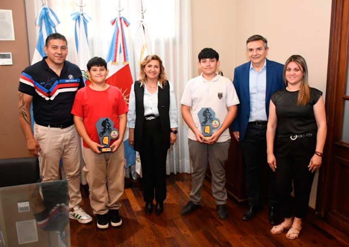 La intendente de la Capital, Ing. Norma Fuentes, recibió en el salón de acuerdos la visita de los hermanos ciclistas Valentino y Benjamín Luna, quienes ocuparon el podio de ganadores en la quinta fecha del Campeonato Argentino de BMX.