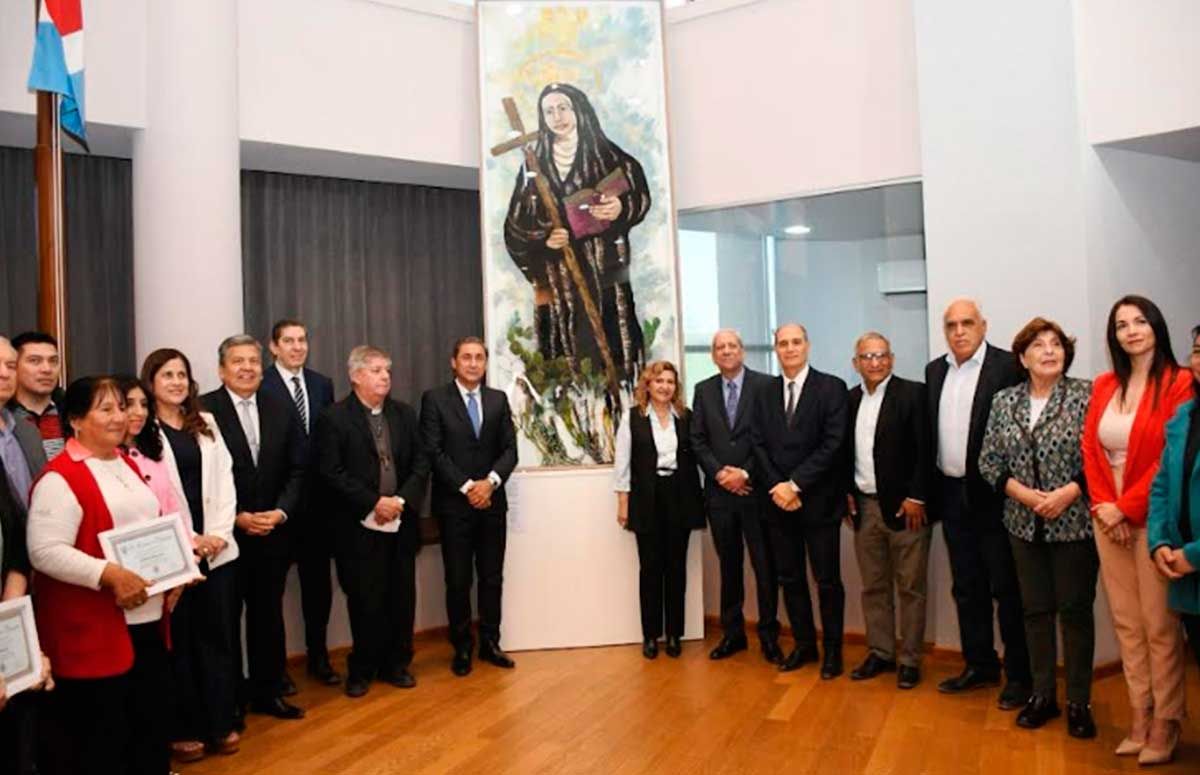 La intendente de la Capital, Ing. Norma Fuentes, participó del descubrimiento del mural textil "La santa santiagueña" en la Cámara de Diputados, elaborado por teleras de las localidades de Majada Sud y de Villa Atamisqui en honor a Mama Antula.