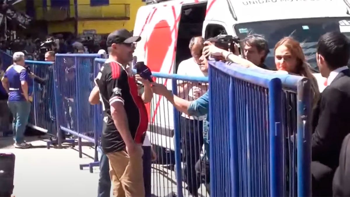 Con la camiseta del Millonario, el simpatizante fue captado por las cámaras mientras ingresaba al club para rendir homenaje a Russo. Su presencia, lejos de generar rechazo, fue recibida con aplausos y muestras de respeto por parte de los hinchas xeneizes que aguardaban en los alrededores del estadio.