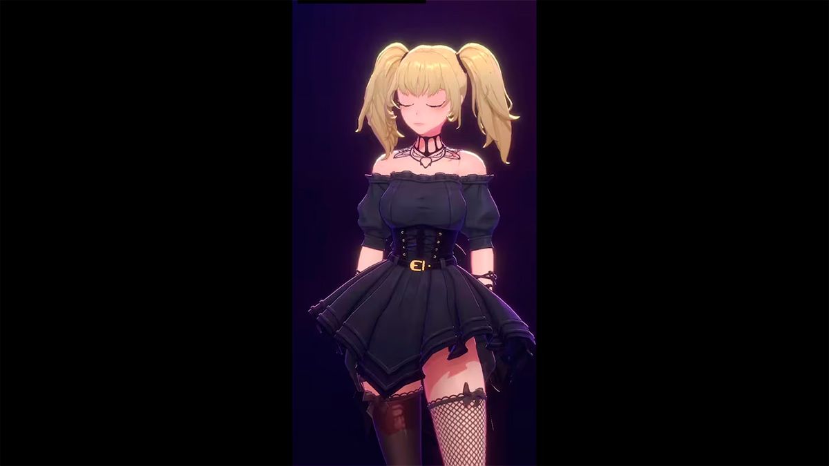 Una mujer rubia con colitas, vestido gótico con los hombros descubiertos y medias de red miraba fijamente la pantalla, a la espera de instrucciones.