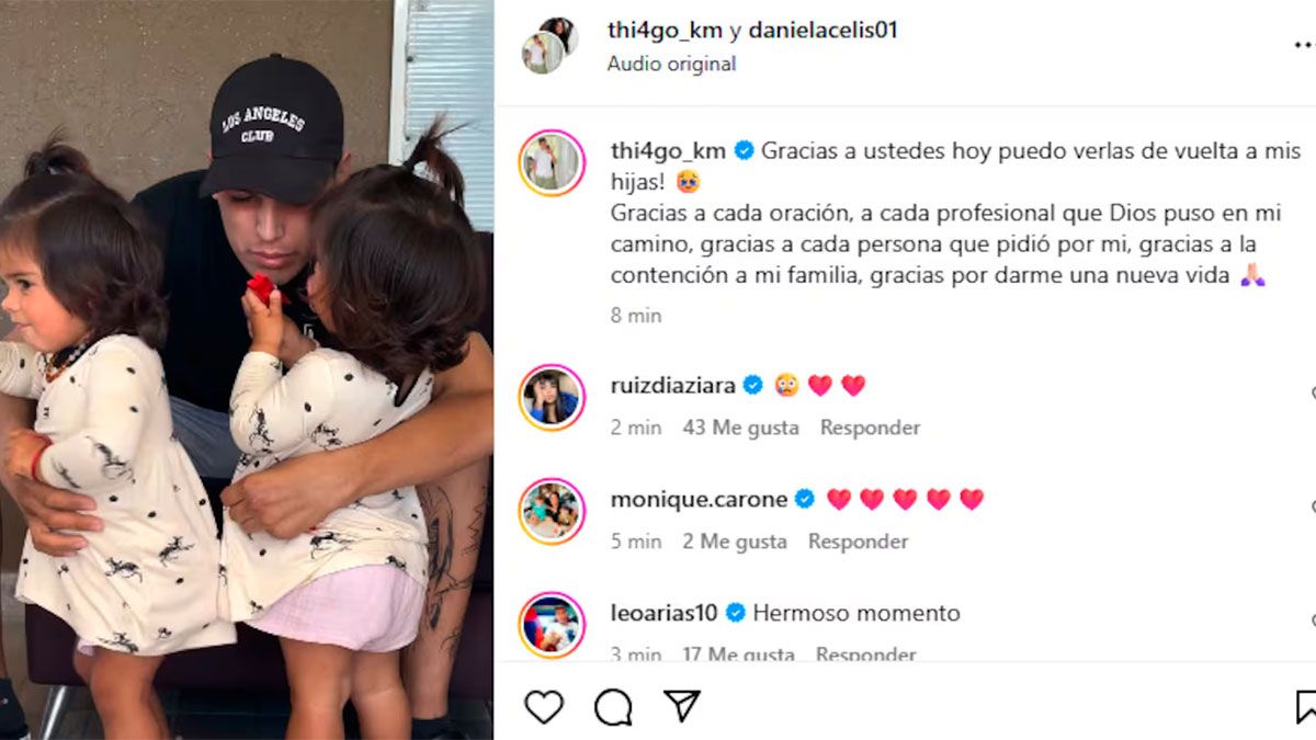 Thiago Medina recibió el alta médico este jueves y una de las primeras cosas que hizo fue reencontrarse con Aimé y Laia, las gemelas de un año que tiene con Daniela Celis.