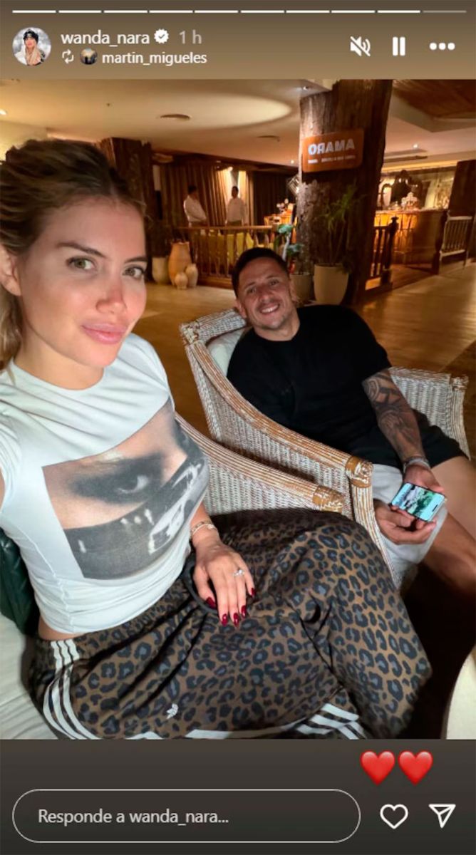 Con el paso del tiempo, Wanda Nara empieza a formalizar cada vez más su vínculo con Martín Migueles. Lo que se inició como una relación a escondidas y a prueba de los detectives de redes, cambió de escenario y las pistas cada vez fueron más elocuentes. El tatuaje de él, la casa de ella, algún auto en común fueron suficientes para dar cuenta del romance. Las evidencias fueron cada vez más elocuentes, hasta que llegó la primera foto juntos en una escapada a las Cataratas del Iguazú, y se lo vio al empresario cada vez más incorporado a la dinámica familiar de la conductora.