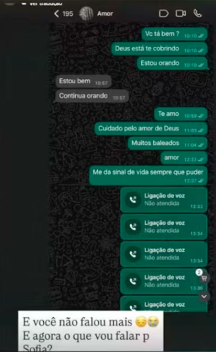 “Y no volviste a hablar. ¿Y ahora, qué le voy a decir a Sofía?”, escribió en referencia a la hija pequeña que tenían juntos.