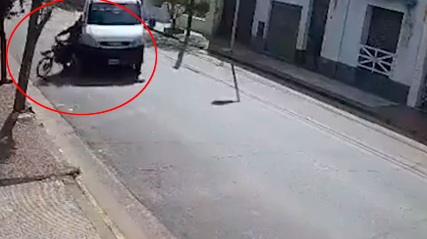 Por detrás, según se alcanza a ver en el recorte de video, pasa un ciclista, quien mira fijo y con atención al camión de Mele, bajo el cual todavía yacían Marianache y su moto. Y allí quedaron ambos, porque Mele puso reversa sobre el asfalto, luego primera, y manejó unos metros más, para estacionar su camión.